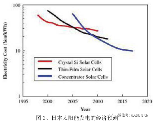 在日本,这个能源匮乏的国家,更加受到重视,下图显示出日本太阳能发电的经济预测,表示出对CPV的看好: