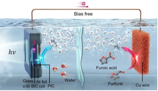 韩国蔚山国立科学技术研究院(UNIST)的两项突破尤为引人注目:其一是今年4月公布了其开发的“双引擎”光电化学制氢系统,通过太阳能与甘蔗废料糠醛的协同反应,实现无外接电源制氢,实测产氢效率达1.4毫摩尔/(平方厘米・小时),是美国能源部设定商业化基准的4倍。该系统通过糠醛氧化平衡电压损耗,同时产出高价值糠酸副产品,显著提升了经济可行性。