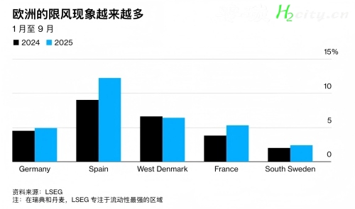 2025年1至9月,欧洲多国出现了史无前例的风电限产:据伦敦证券交易所集团(LSEG)统计并被彭博等媒体披露,德国、西班牙、法国与瑞典南部在今年前九个月的风电限产率位列最高,西班牙5月达到单月峰值,近两成的风电被刻意削减;法国8月和德国3月也分别创下月度高点。这个“风电限电”的现象已经从孤立事件演化为跨国、跨季节的结构性问题。