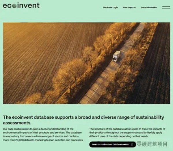 瑞士Ecoinvent数据库。出处:Ecoinvent