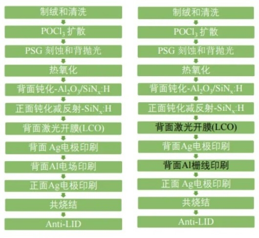 (2)P区正电极采用Al浆,Ag浆使用量降低50%,且采用P 型单晶硅作为基底,明显降低了生产成本。激光设备在此方法下得到比较好的应用。设备环节省去了比较昂贵离子注入和光刻掩膜设备,金属化环节采用高温银浆与铝 浆,金属化成本同步降低,增加设备仅为激光设备与部分清洗设备,初步估计改良后P 型IBC设备与PERC/TOPcon设备成本较为接近,龙头企业规模化采购,降低投资成本,预计单GW投资额约在1.9-2.1亿元。
