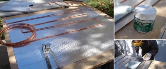 作者用铜管和铝背板做了个"热交换器"——把铜管一圈圈焊在铝板上(铝板就是光伏板的背面),这样光伏板发热时,热量会通过铝板传导到铜管里,铜管里的液体(水或者防冻液)被加热,再流到储水箱或者暖气片里。