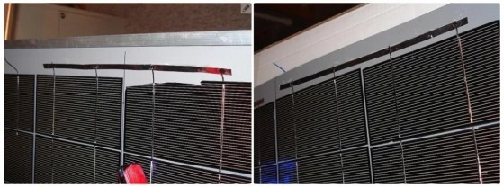 太阳能电池特别薄(0.2mm,比纸还薄!),作者用导热硅胶(Begquist sil-pad 400)把电池粘在绝缘材料上(防止短路),再把电池一片片串起来(像串糖葫芦),最后粘到铝背板上。