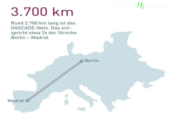 在远期计划中,GASCADE还计划建设从柏林到马德里的氢输送管道。