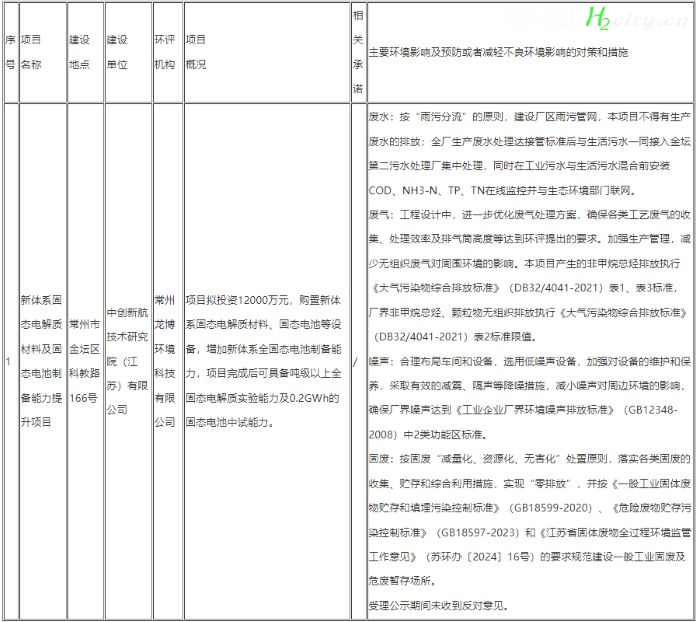 1月16日,常州市金坛区人民政府公示信息显示,中创新航技术研究院(江苏)有限公司计划投资1.2亿元,建设新体系固态电解质材料及固态电池制备能力提升项目。