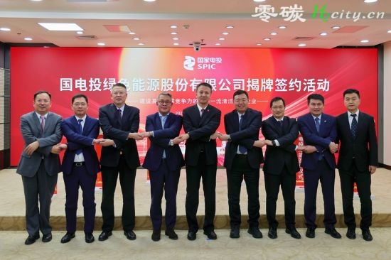 电投绿能党委书记、董事长杨玉峰,总经理和鲁为公司揭牌。