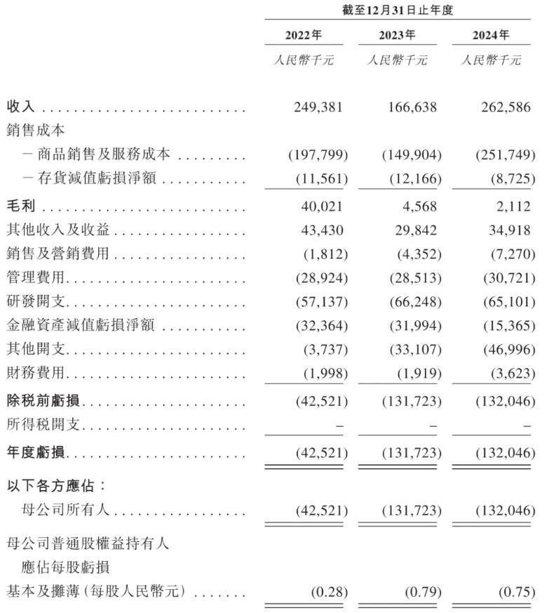 鸿基创能2022年、2023年、2024年年度亏损分别为4252万元、1.32亿元、1.32亿元。