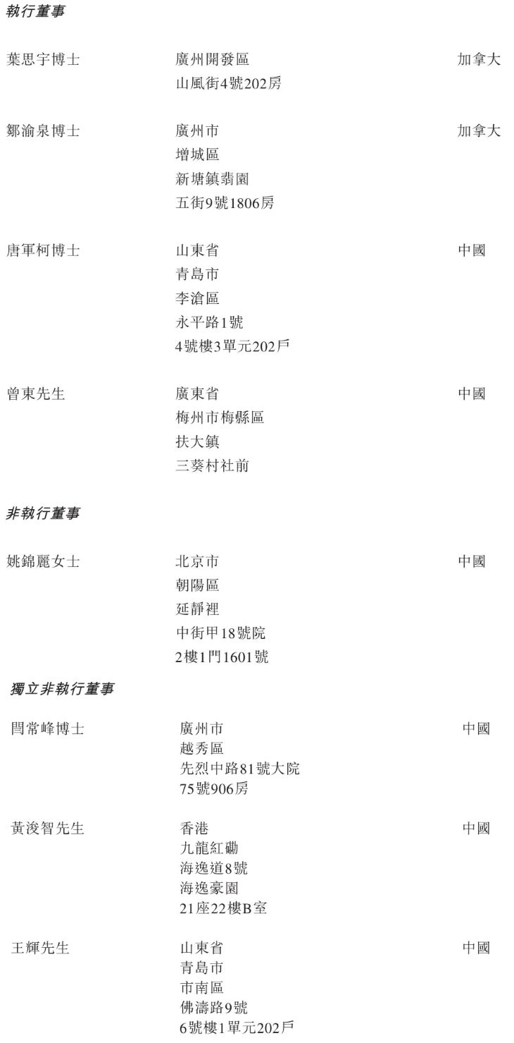 鸿基创能执行董事分别为叶思宇博士、邹渝泉博士、唐军柯博士、曾东;非执行董事为姚锦丽女士,独立非执行董事分别为闫常峰博士、黄浚智、王辉。叶思宇博士、邹渝泉博士均为加拿大国籍。