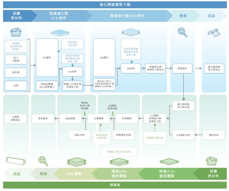 鸿基创能成立于2017年12月,公司专注于自主化高性能膜电极的规模化量产,开发了CCM(质子交换膜电池用高性能催化剂涂层质子膜)阴阳极双面直接涂布技术、膜电极自动化快速封装技术、膜电极一体化成型技术。
