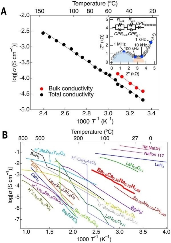 图2、Ba0.5Ca0.35Na0.15H1.85的离子电导率© 2025 AAAS