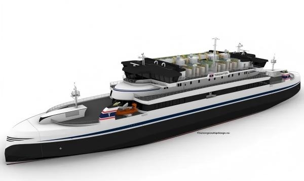 渡轮挪威船舶设计公司(Norwegian Ship Design)发布了新的效果图,展示了燃料电池装置在2026年交付时将成为世界上最大的氢动力船舶上的效果图。这两艘船分别位于挪威Myklebust Verft船厂的80号和81号船坞,由Torghatten Nord承包,该公司与挪威船舶设计公司共同开发了这两艘双头渡轮。