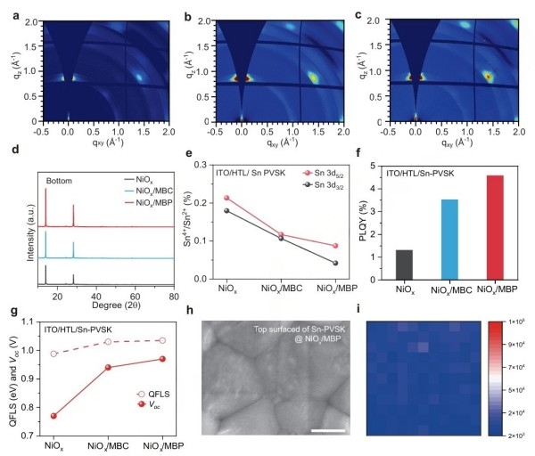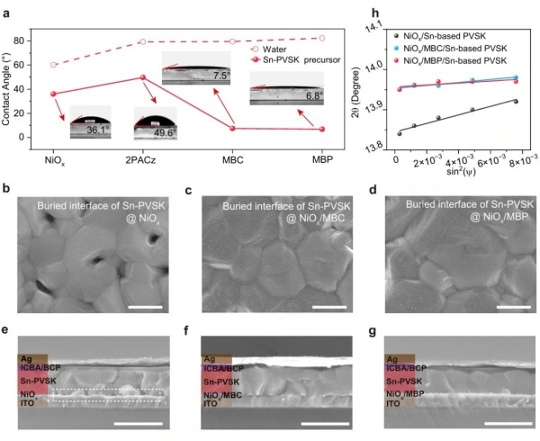 锡基钙钛矿太阳能电池(TPSCs)作为一种前景广阔的无铅、环境友好型光伏器件,其倒置结构认证效率已超过16%。然而,受限于空穴传输层性能不佳与埋底界面质量差等问题,TPSCs的性能与稳定性仍落后于理论潜力。