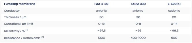 PEM燃料电池膜、PEM水电解膜、氧化还原液流电池膜、水处理工艺膜、碱性水电解膜、气对气加湿膜、用于电化学过程的离子聚合物和分散、加湿器模块ecomate、Fumados阻垢剂添加剂。
