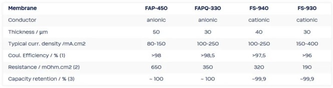 根据转移离子的类型,有机氧化还原液流电池 (ORFB) 使用转运钠离子或钾离子的阳离子交换膜或转移氯离子或硫酸根离子的阴离子交换膜。