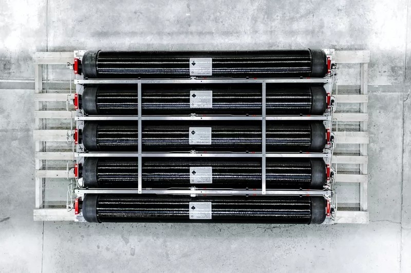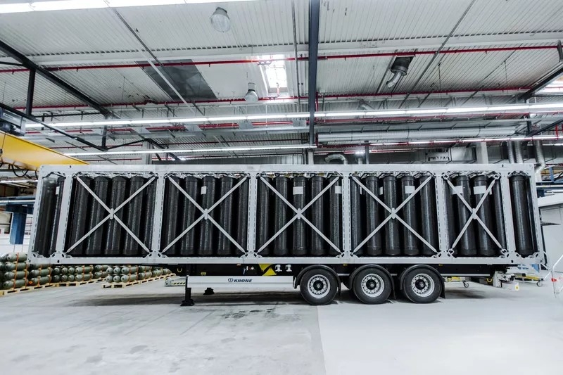 采用4型复合轻量化设计气缸的集装箱运输模块是全球最有效的气体运输和储存系统,用于压缩氢气的运输或作为地面储存解决方案。