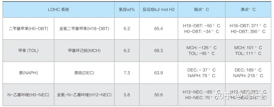 氢容重:以质量分数 (wt%) 表示的氢容量显示了可释放氢气的质量与氢化 LOHC 的总质量之比。具有更高的氢气容量,可以用相同质量的 LOHC 运输更多的氢气,因此是 LOHC 系统最重要的因素之一。