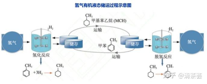 - 甲基环己烷脱氢产生氢气和甲苯,且甲基环己烷和甲苯在常温常压下都是液体,因此甲基环己烷也是比较理想的储氢载体。