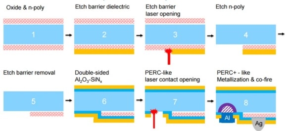 江苏日托于2021年3月申请的专利《一种P型IBC电池的制备方法》,采用P 型硅片作为衬底,正背面均无需硼掺杂,且不需要掩膜和光刻,工艺步骤简单,将传统 IBC复杂的过程(18步)简化为12步,生产成本明显降低。