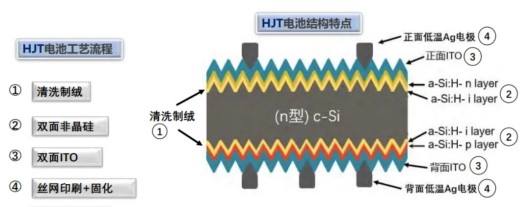 主要得益于N型硅衬底以及非晶硅对基底表面缺陷的双重钝化作用。目前量产效率普遍已在24%以上;25%以上的技术路线已经非常明确,即在前后表面使用掺杂纳米晶硅、掺杂微晶硅、掺杂微晶氧化硅、掺杂微晶碳化硅取代现有的掺杂;HJT未来叠加IBC和钙钛矿转换效率或可提升至30%以上。