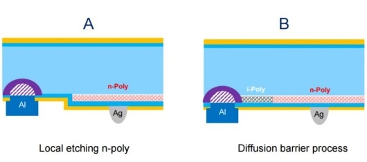 S03背面P扩散、退火:对背面非晶硅层进行磷掺杂处理,后高温退火处理,非晶硅 转化为多晶硅。