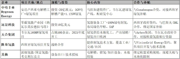 中国氢能企业在西班牙已落地重点项目(截至2025年12月)