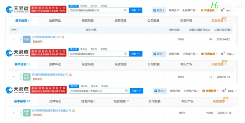 据备案文件,该项目位于巴彦淖尔市磴口县,总投资241568.26万元,计划2026年11月开工,2028年12月竣工。从核心建设内容来看,本项目制氢部分建设制氢站一座,配套建设106台1000Nm³/h的碱性电解水制氢设备及其附属设施,并配套建设52万Nm³的储氢设施,新能源项目配套制氢最大生产规模为12.72万Nm³/h,年生产绿氢约5.62亿Nm³。其中项目一期建设44台1000Nm³/h的碱性电解水制氢设备及其附属设施,并配套建设22万Nm³的储氢设施,新能源项目配套制氢最大生产规模为5.28万Nm³/h,年生产绿氢约2.24亿Nm³。股权关系穿透显示,巴彦淖尔驰裕新能源有限公司成立于2025年,由苏州阿特斯能源工程技术有限公司全资控股。且就公开信息来看,这也是阿特斯旗下的首个绿氢项目,标志着这家光伏龙头正式宣告进军氢能领域。