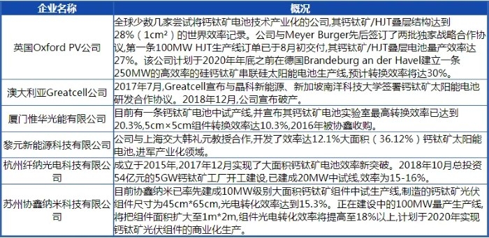 早在2015年,牛津大学教授Henry Snaith等多位专家合作论文中预测,未来如果将最好的硅组件和钙钛矿器件合理地整合在一起,在不用大幅改动两者制造技术的情况下就可以获得超过30%的效率。近几年,钙钛矿电池技术与晶硅和CIGS薄膜技术相结合成为研究热点。钙钛矿CIGS叠层结构最早由斯坦福大学在2015年制备,效率18.6%,当时研究者希望五至十年内达到25%甚至30%。2020年初, 由美国国家可再生能源实验室 (NREL) 发布, 德国海姆霍兹柏林材料所 (HZB) 研发出了效率为 29.15% 的钙钛矿/硅两端 TSCs(1.06 cm2 ), 打破了之前由牛津光伏创造的 28% 的记录, 使得光电转换效率超过 30% 的可能性进一步提高。